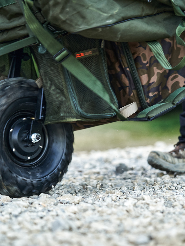 - Cada vez los equipos de pesca son mas voluminosos y pesados, hemos desarrollado un kit con un motor eléctrico para que se adapte a muchísimos modelos de carros para llevar el equipo de pesca a cualquier sitio.