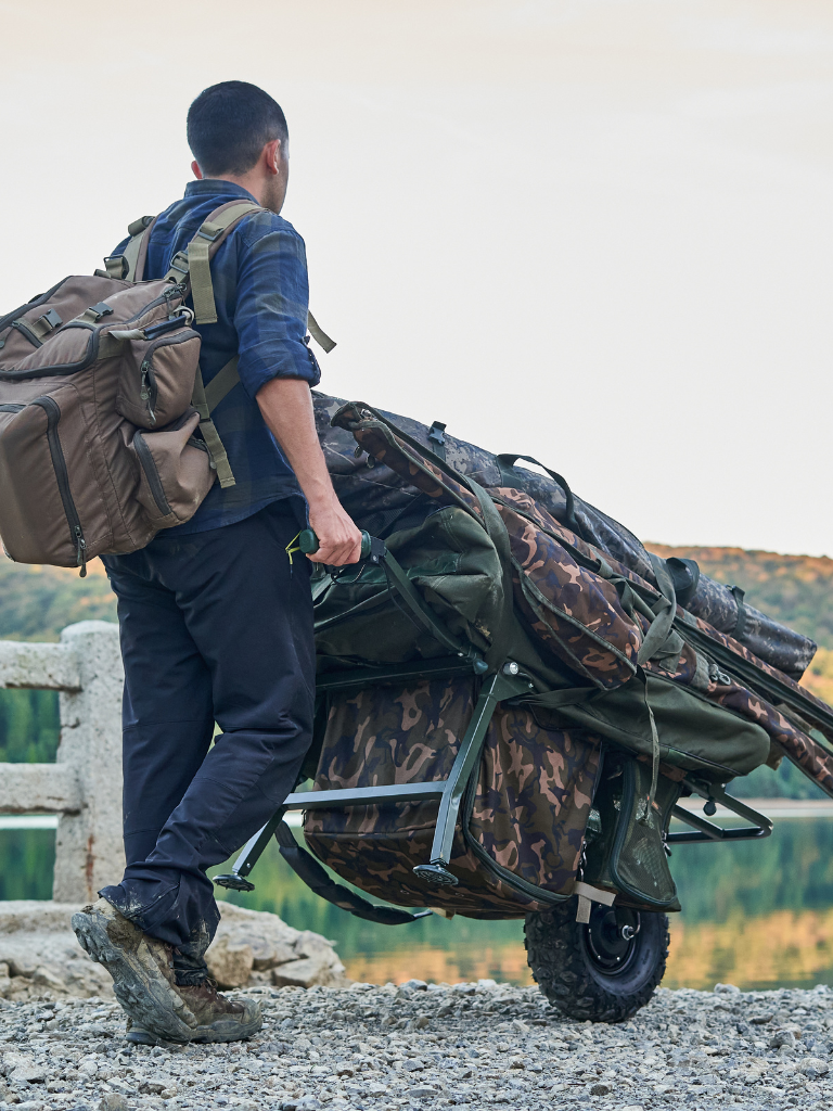 - Esta diseñado para montarlo en distintos carros de pesca y de esta manera ayudando le al pescador a transportar su equipo al puesto elegido haciendo el transporte del equipo mucho mas fácil y ligero.