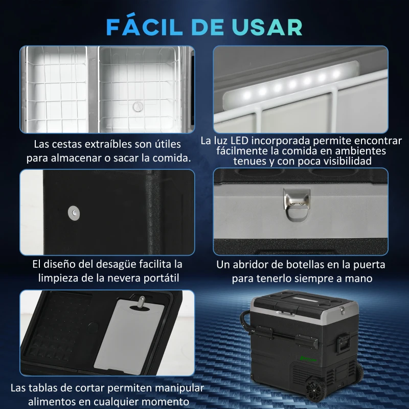 Gracias a su regulador de temperatura de hasta -20°C, se puede usar tanto como nevera como congelador. Su diseño con asa y ruedas la convierten en una opción ideal para llevarte a tus salidas, sobre todo los meses mas calurosos!!